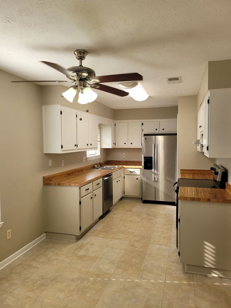 Callaway! 3 bedroom 2 bath home with 2 car garage. This home features LVP flooring in the common areas and carpet in the bedrooms, foyer, living area with vaulted wood beams and wood burning fireplace non-operational, kitchen with stainless steel appliances. laundry closet off the kitchen and formal dining room. Large privacy fenced backyard, storage shed "AS IS", sprinkler system on separate meter with backflow prevention.