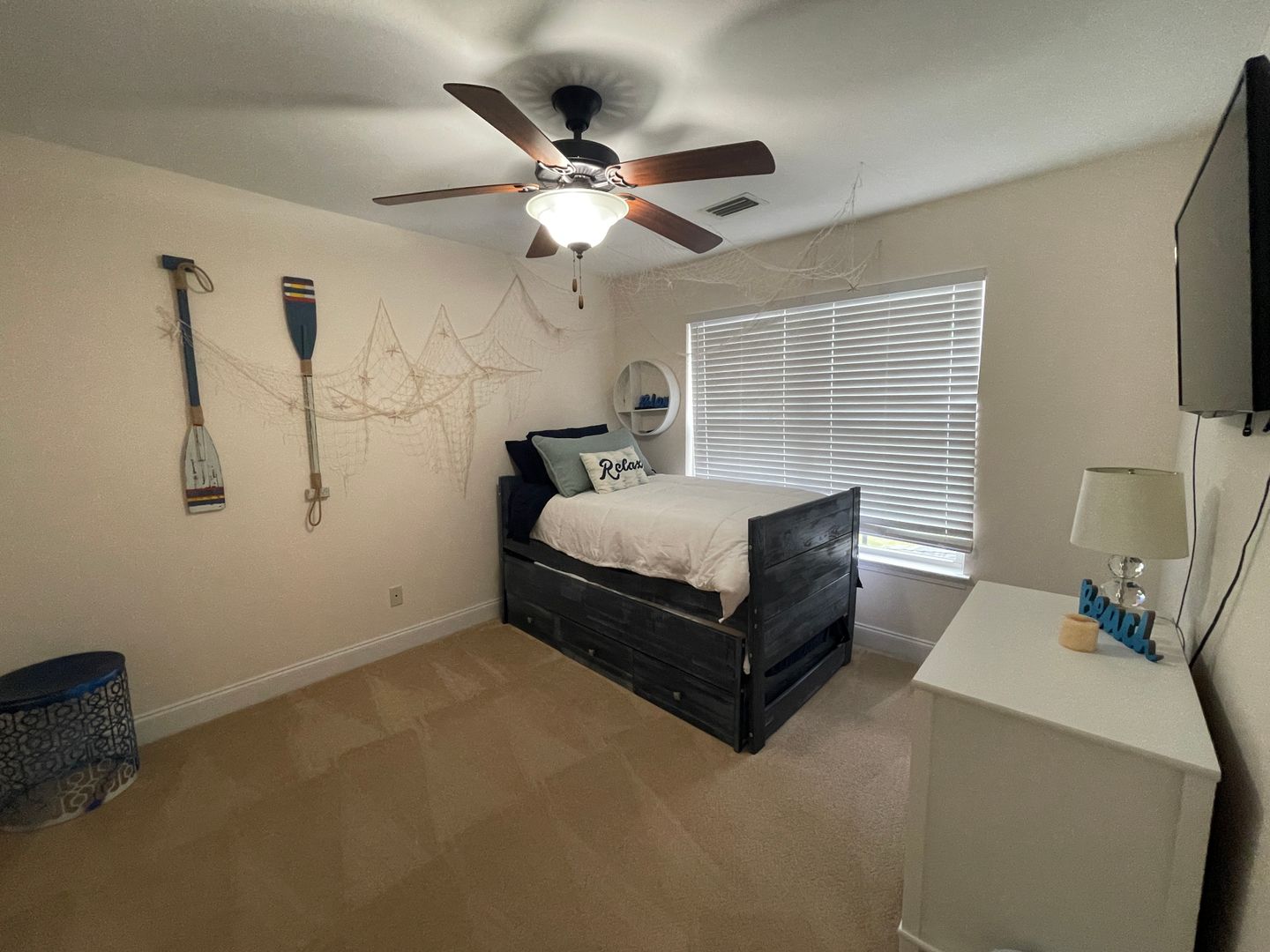 For Lease - Furnished Townhome in Annabella's, Community Pool & Exercise Room! One year Lease Required - Situated in the gated community of Annabella's, this 3 BR, 2.5 BA townhome is conveniently located on Panama City Beach close to the Hathaway Bridge and easy access to Navy base, grocery stores and beaches! The townhome comes fully furnished with everything needed for corporate/relocation housing. The downstairs features a beautiful kitchen with stainless appliances, granite counters, excellent cabinet storage and includes all small appliances/cookware/dish ware. The living room offers a mounted TV, electric fireplace, and comfy seating for a relaxed feel. The dining room leads to a back patio with outdoor seating as well. Half bath for guests and 2-car garage with washer/dryer; Upstairs are the bedrooms and bathrooms. The spacious primary suite offers a bedroom suite and small workstation complemented by an ensuite bathroom with soaking tub, walk-in shower, double vanities, and walk-in closet. The two additional bedrooms have a queen bed, and two twin beds with a shared hallway bath featuring a tub/shower combo. Annabella's is a quaint townhome community with a community pool, exercise room and lush landscaping. *Rent includes trash and ground keeping. *Pets negotiable - Pet Screening Required - $250 pet deposit, $50 pet fee, $25 monthly pet rent per pet.