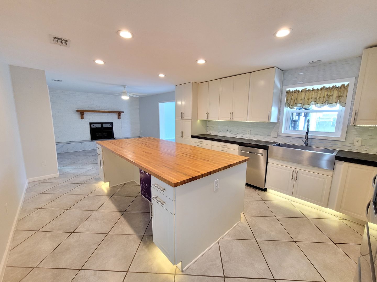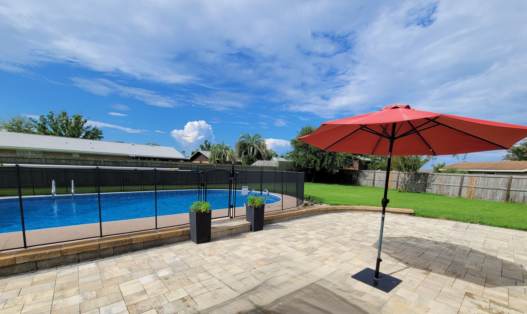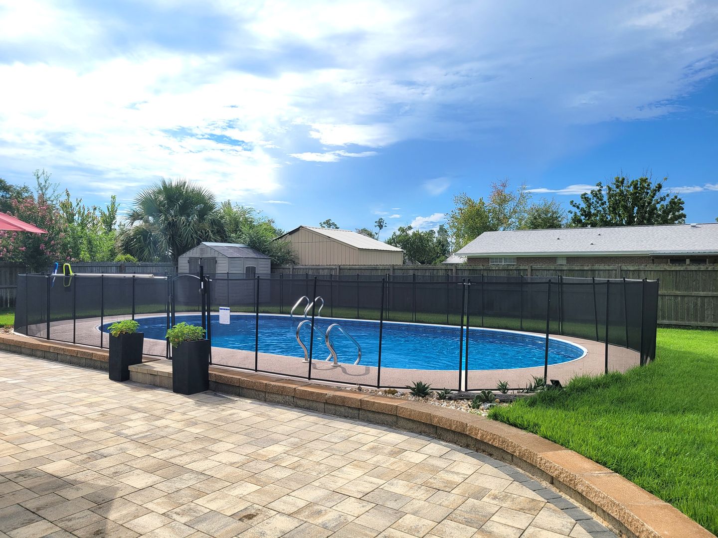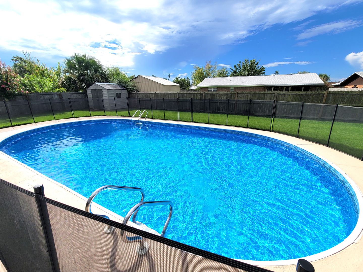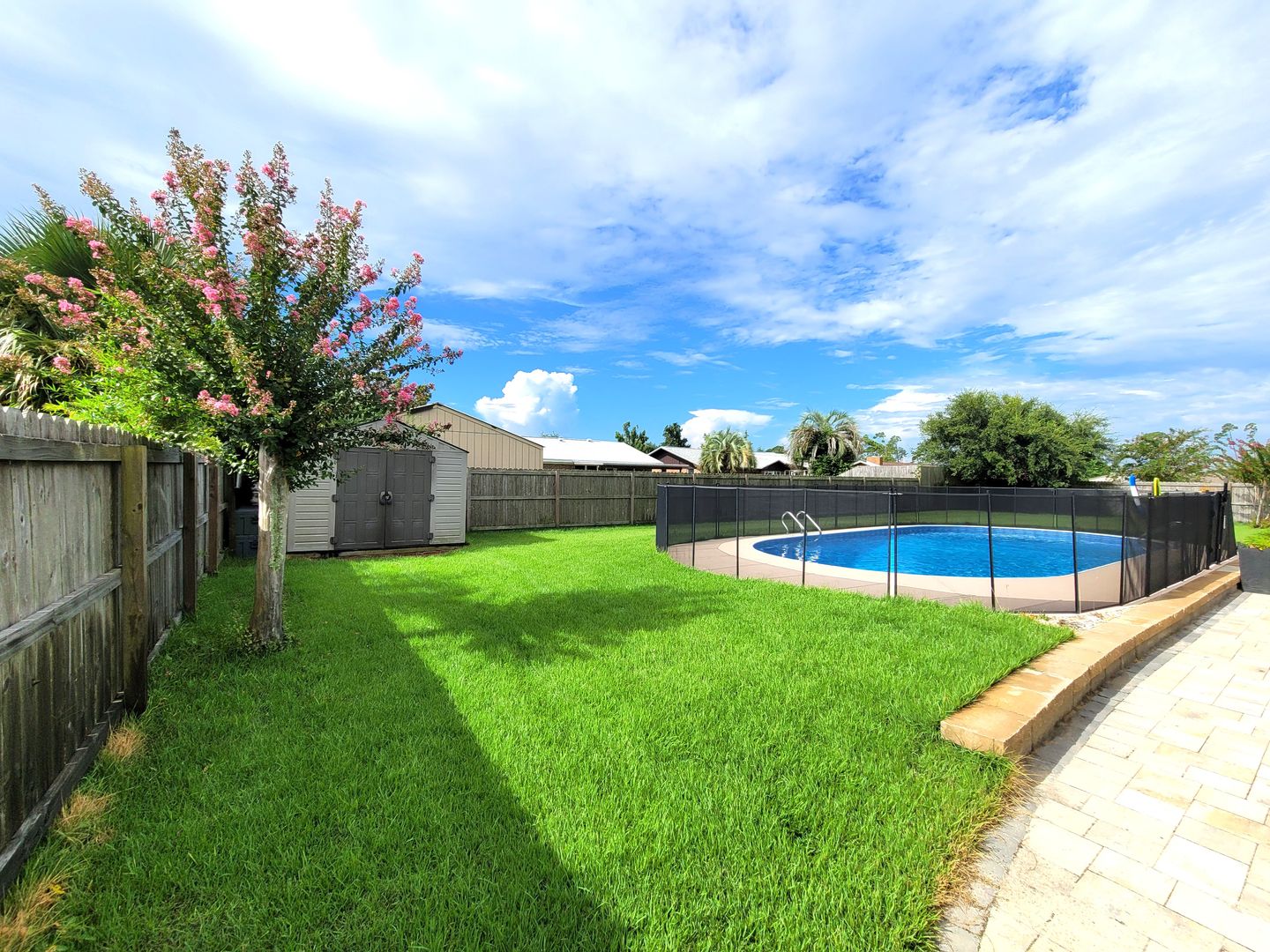 Lynn Haven Belaire Estates Pool Home! Beautiful 3 bedroom 2 bath home with 2 car garage, This home features foyer, living area, large kitchen with stainless steel appliances, farm style sink, soft close cabinets, under cabinet lighting, tiled backsplash, large island/breakfast bar, lots of storage space, breakfast area, bonus area, climate controlled sunroom over-looks the patio and pool area, master bedroom is spacious with its own door that leads to the backyard, tile throughout with carpet in the bedrooms, large laundry room with utility sink and W/D hookups, large privacy fenced backyard, sprinkler system, inground liner pool (cholorine pool) has pool fence for added protection, pool service provided once a week, fireplace in breakfast area is non-operational. Well on Culligan System, owned by owner (tenant responsible for salt) Shed is AS IS! Storage bins next to shed is for owner use only!