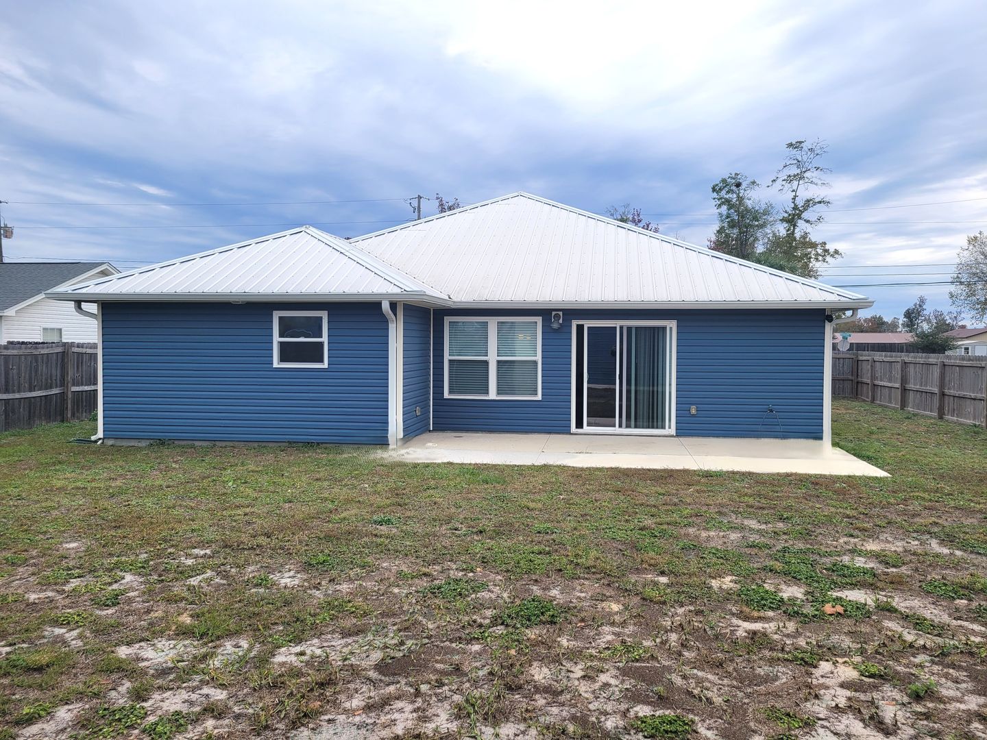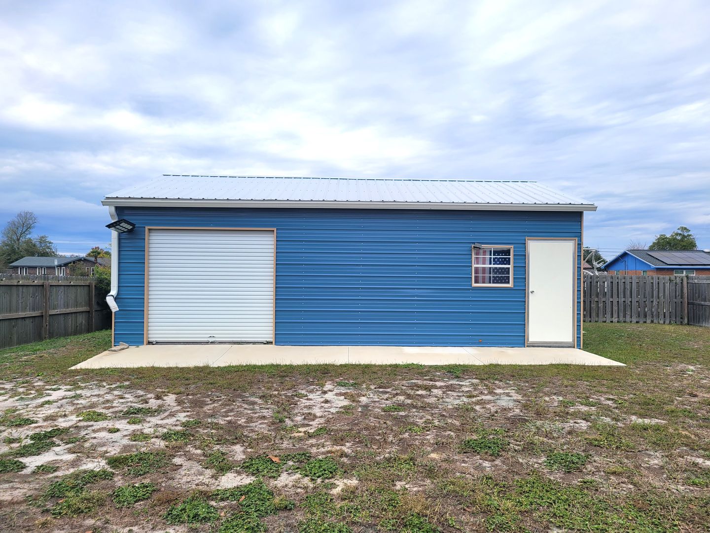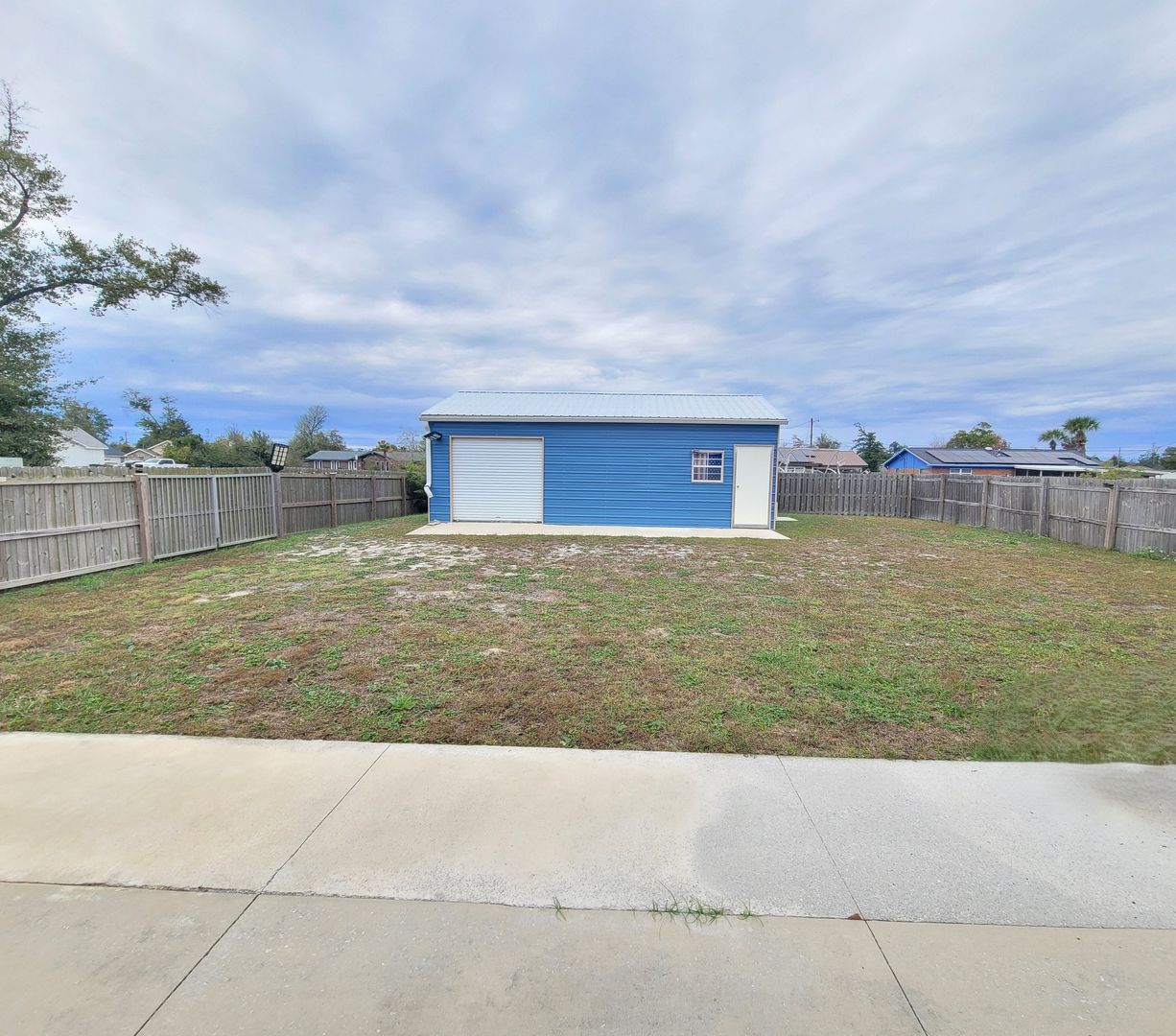 ot home in Lynn Haven with detached garage/workshop. You will love this 4 bedroom 2 bath split plan home built in 2021. Highlights include tall ceilings, LVP flooring throughout, kitchen island, granite countertops, stainless steel appliances, tray ceiling in master bedroom, laundry room with washer/dryer, metal roof with gutters, privacy fenced yard, double gate, widened driveway, parking pad beside fence, and flag pole. The detached garage/workshop has a roll up garage door on one side and the other side has an AC unit so it can be used for storage or a workshop. Nearby you there are 4 City of Lynn Haven parks, some that include boat ramps, swimming areas, playgrounds and ball fields. There is also a new walking/biking trail nearby. Lynn Haven is a golf cart friendly community. Centrally located between the beach and Tyndall AFB, with lots of restaurants and shopping nearby. NO PETS!