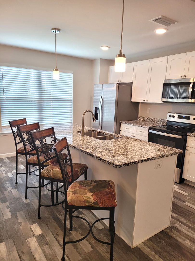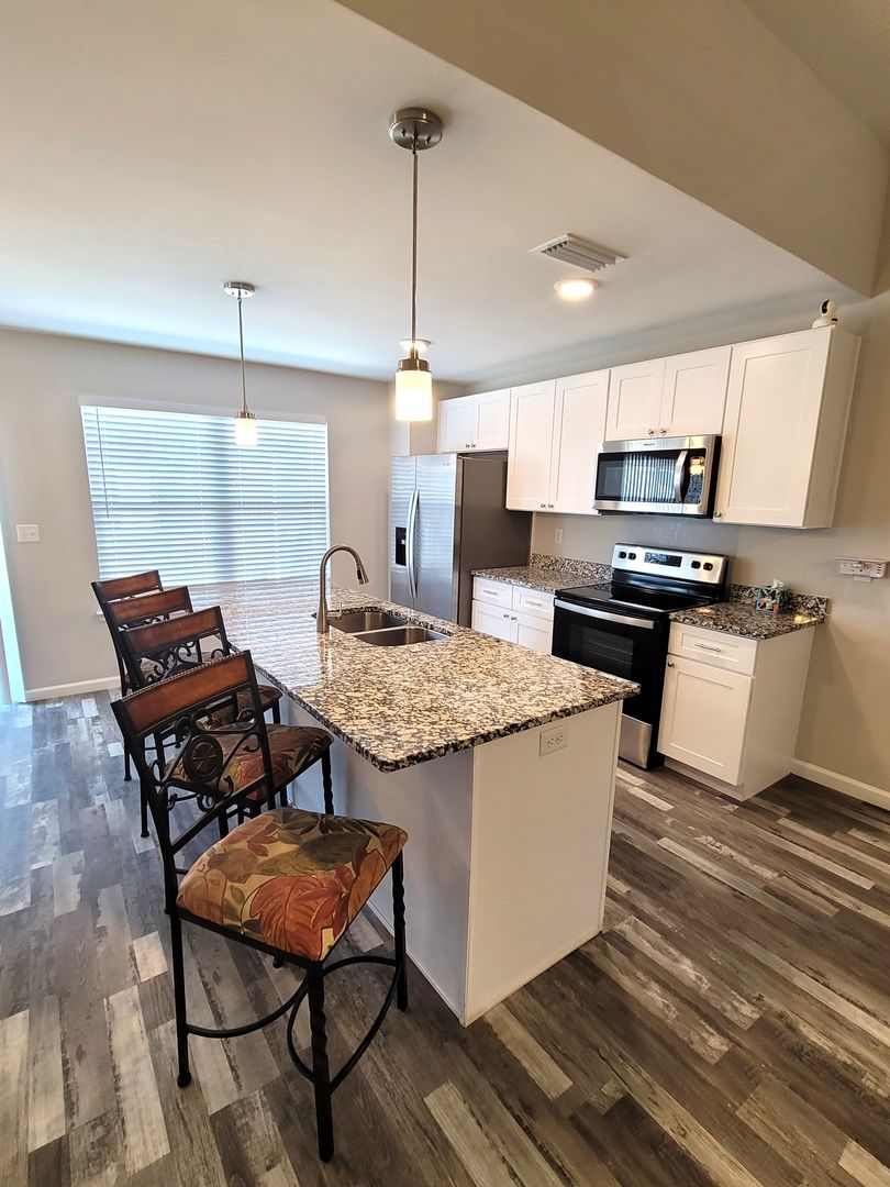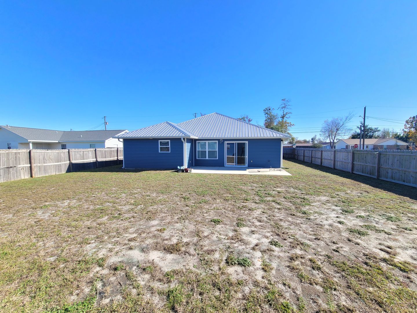 ot home in Lynn Haven with detached garage/workshop. You will love this 4 bedroom 2 bath split plan home built in 2021. Highlights include tall ceilings, LVP flooring throughout, kitchen island, granite countertops, stainless steel appliances, tray ceiling in master bedroom, laundry room with washer/dryer, metal roof with gutters, privacy fenced yard, double gate, widened driveway, parking pad beside fence, and flag pole. The detached garage/workshop has a roll up garage door on one side and the other side has an AC unit so it can be used for storage or a workshop. Nearby you there are 4 City of Lynn Haven parks, some that include boat ramps, swimming areas, playgrounds and ball fields. There is also a new walking/biking trail nearby. Lynn Haven is a golf cart friendly community. Centrally located between the beach and Tyndall AFB, with lots of restaurants and shopping nearby. NO PETS!