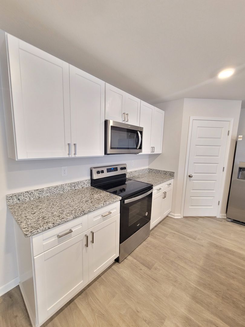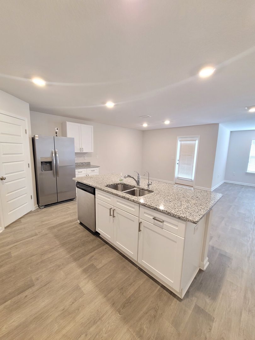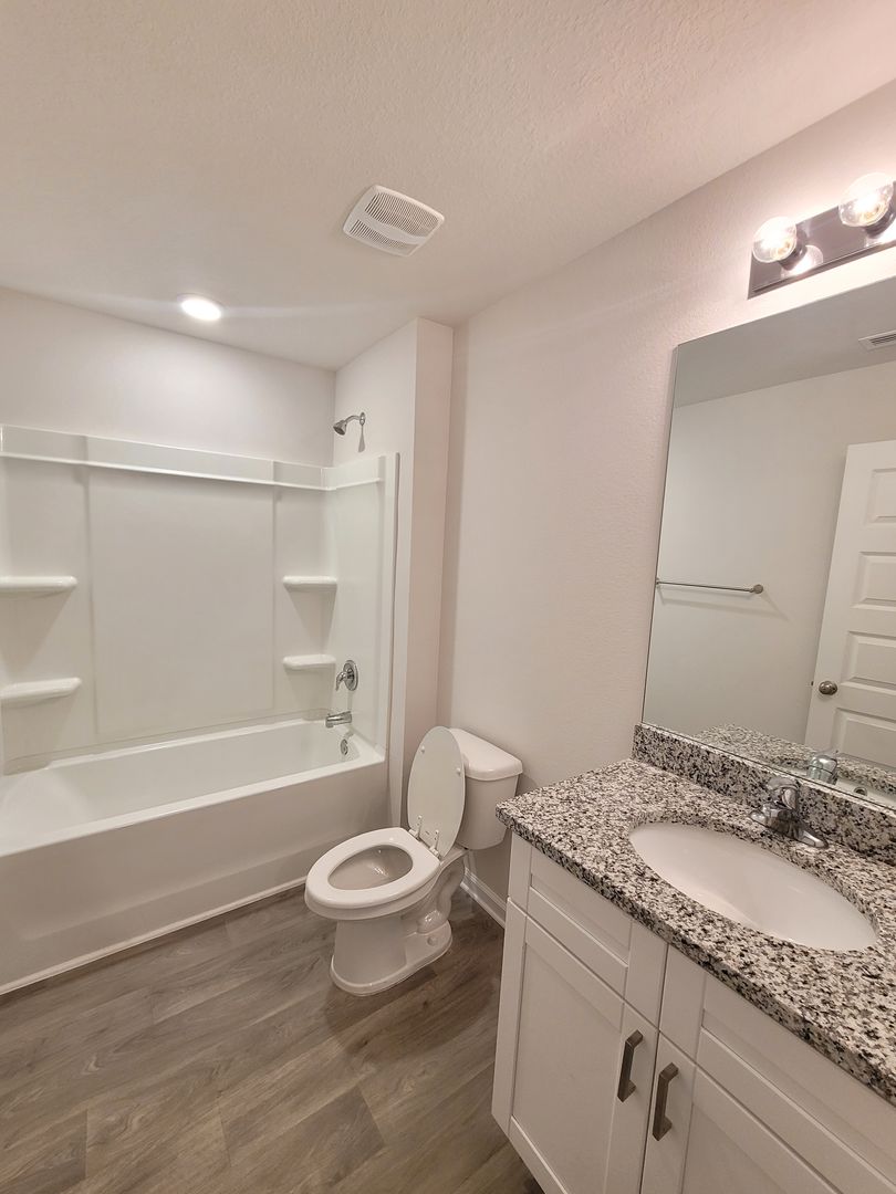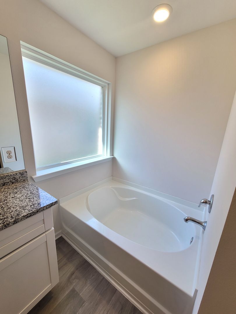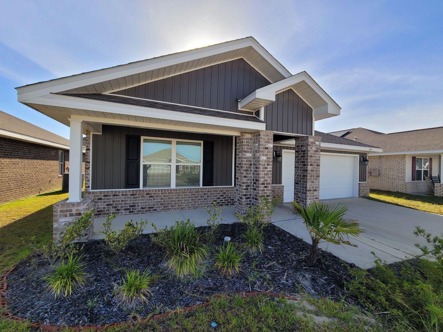 Titus Park! 4 bedroom 2 bath home with 2 car garage. This home features covered front porch, open living area, vinyl flooring in the common areas, carpet in the bedrooms, kitchen with island breakfast bar, pantry closet, stainless appliances, split bedroom plan, master bathroom has soak tub, separate shower, double vanity and walk in closet, covered back patio, community pool and mailbox.