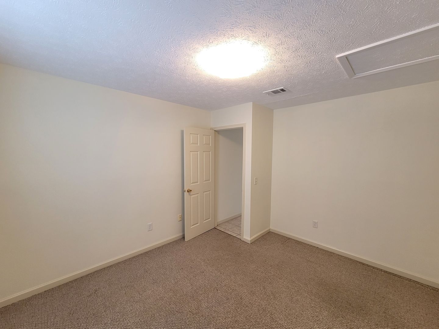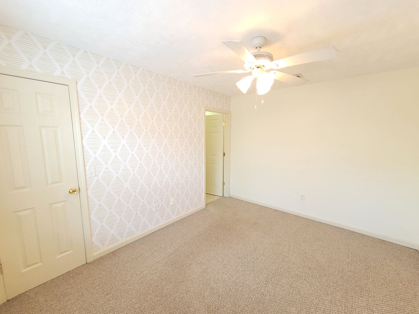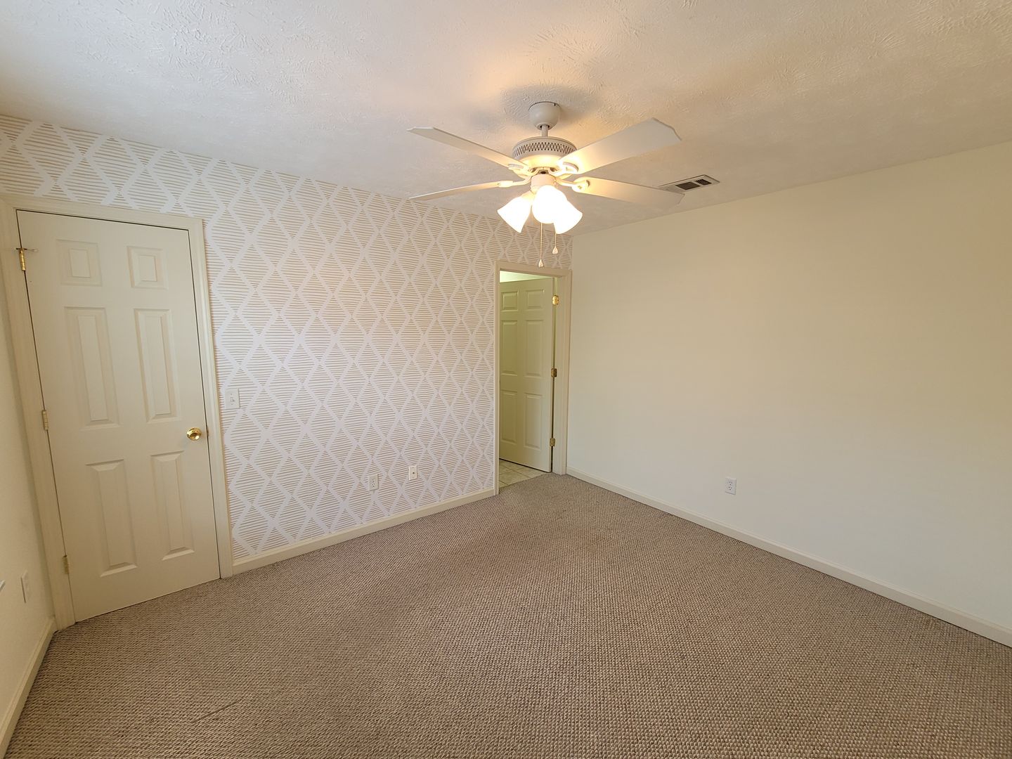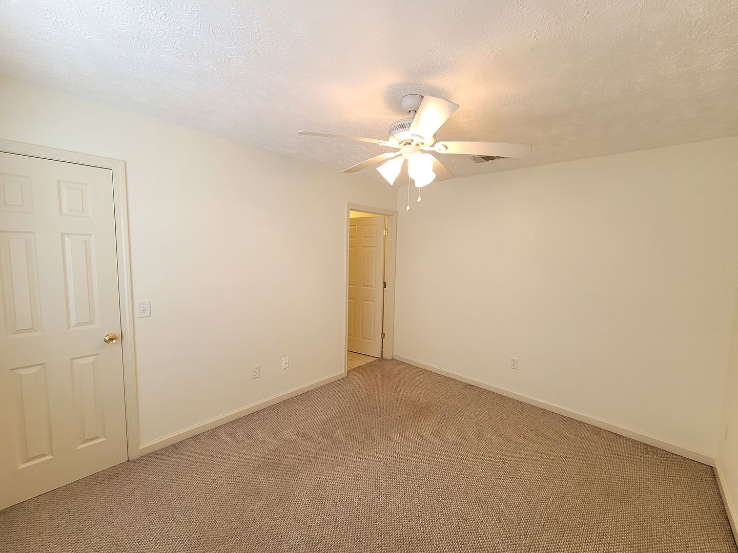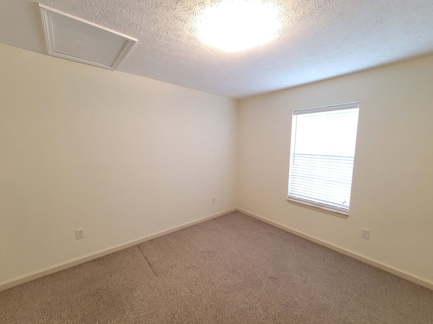 1 master bedroom, bonus room/office, 1.5 bath, open living area with vaulted ceiling open to the kitchen, breakfast bar, stackable W/D included AS IS, tile flooring in the common areas and berber carpet in the bedrooms, covered front porch and open back patio.