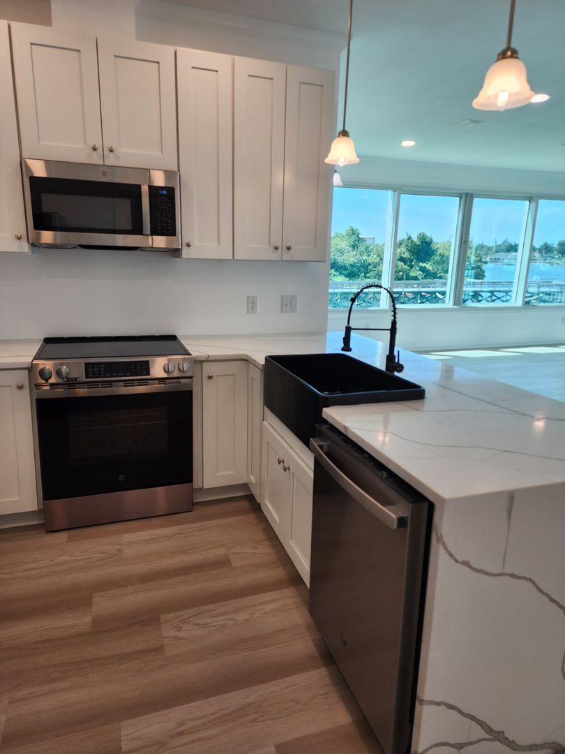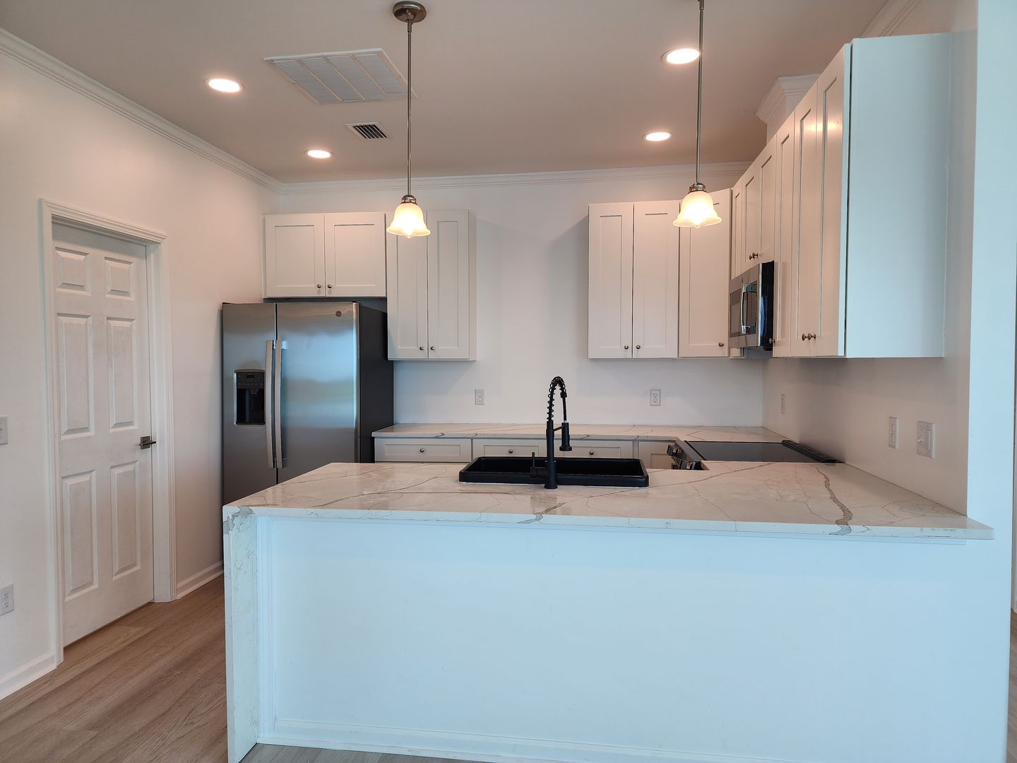 NEW BUILD - Elegant 3 bedroom, 2 bath WATERFRONT home featuring 2 stories with gorgeous view of Watson Bayou from each floor. Easy access to park located next to property. Third floor features open master bedroom with plenty of natural lighting, 2 walk-in closets and master bathroom with stand alone shower. Second floor hosts living/dining combo, 2 bedrooms, main bathroom, kitchen and laundry room. 2nd and 3rd floors feature balconies for enjoying the evening sunset over the bayou. Stainless steel appliances in kitchen. Washer and dryer convey. Tankless gas water heater. Starlink fire protection system included. Apartment on first floor and garage do not convey. Boat slips available for rental through Emerald Harbor Marina. Entrance located on the 2nd floor .No pets.