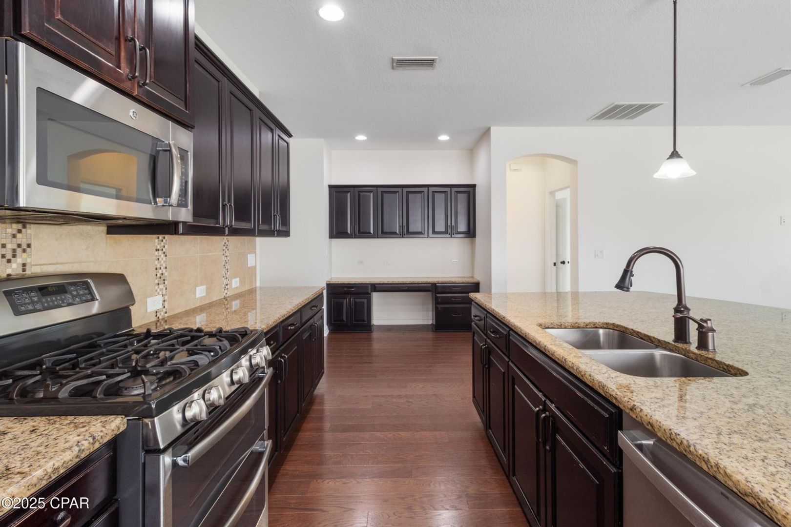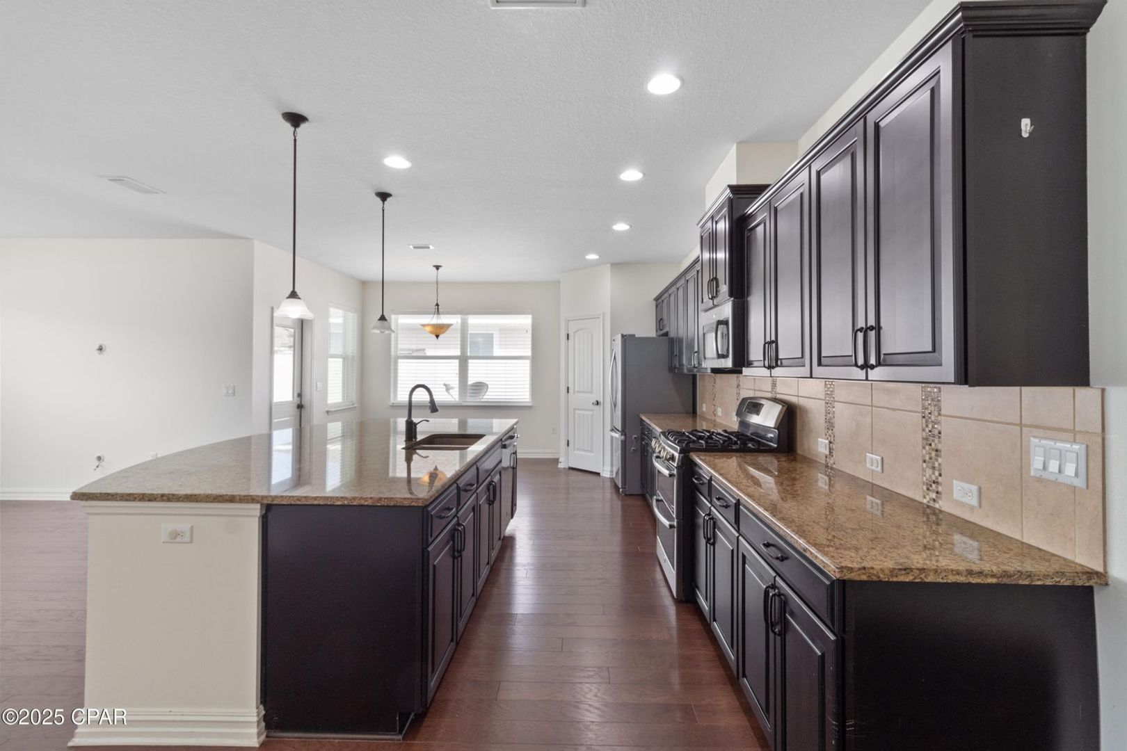 For Lease - Located in the highly sought-after Breakfast Point community of Panama City Beach, this well-designed four-bedroom, three-bathroom home offers spacious living, modern conveniences and a welcoming neighborhood atmosphere. With an additional office space and a flexible extra room that can serve as a formal dining area or playroom, this home is thoughtfully laid out for both work and leisure. The open-concept kitchen and living area provide a welcoming space for gatherings, while the split floor plan ensures privacy, with separate areas for the additional bedrooms and the primary suite tucked away at the back of the home. That kitchen features stainless appliances including a gas range, an oversized island, and walk-in pantry. The primary bedroom features a double vanity, a spacious walk-in closet and a peaceful retreat from the rest of the home. The fenced backyard is perfect for outdoor fun and relaxation, while sidewalks, parks and green spaces create a vibrant community atmosphere. Just a short walk or bike ride to Breakfast Point Academy, this home is also conveniently close to Publix, restaurants, and major retailers. Pier Park, with its shopping, dining and entertainment options, is only five miles away, and the Panama City Beach Sports Complex is less than four miles from your doorstep. With minimal drive-by traffic and a welcoming golf cart-friendly environment, this home is ideal for families looking to enjoy the best of coastal living in a safe and well-connected neighborhood. *Pets negotiable with $250 pet deposit, $50 pet fee, $50 monthly pet rent. All measurements approximate, verify if important.